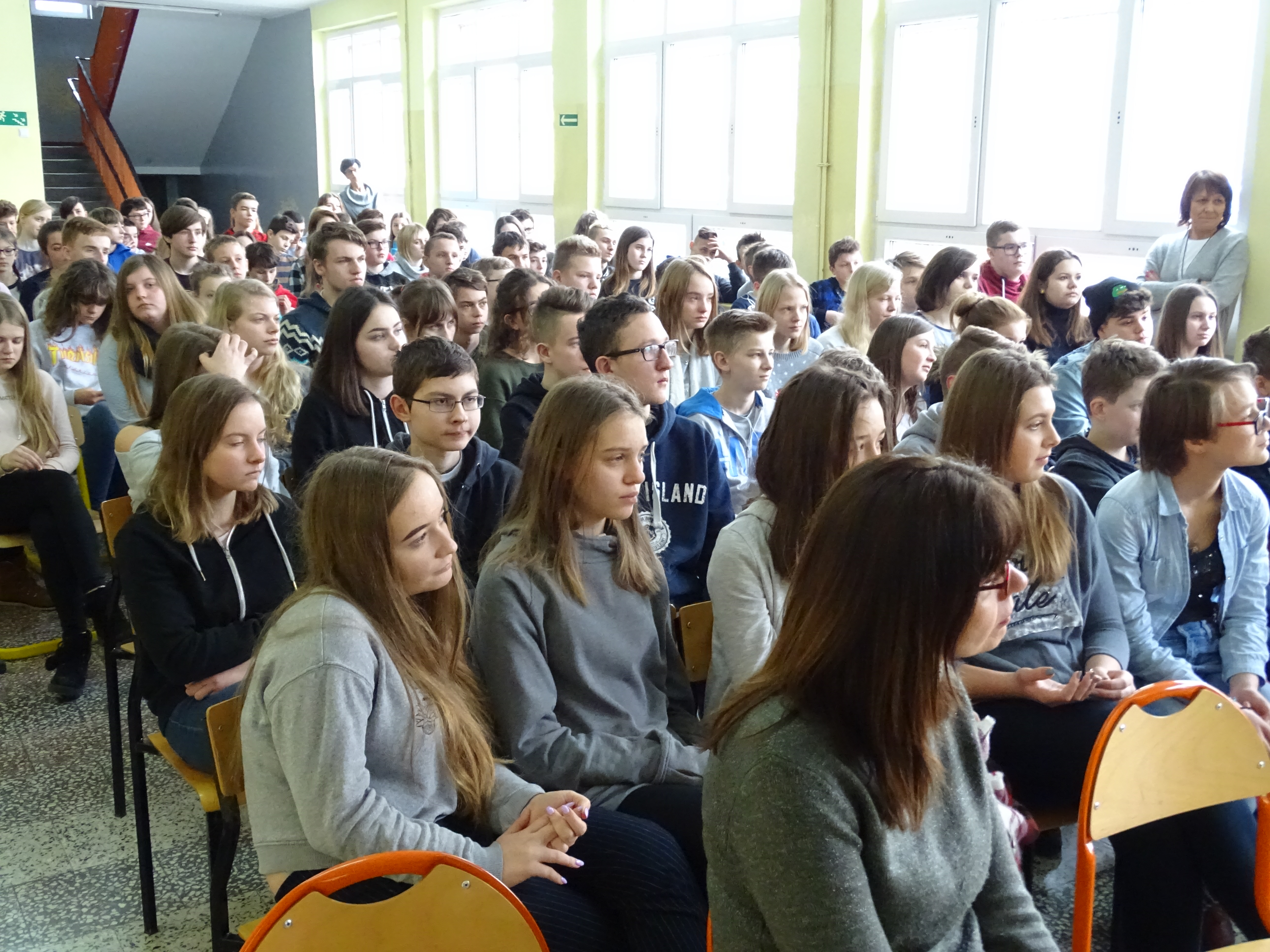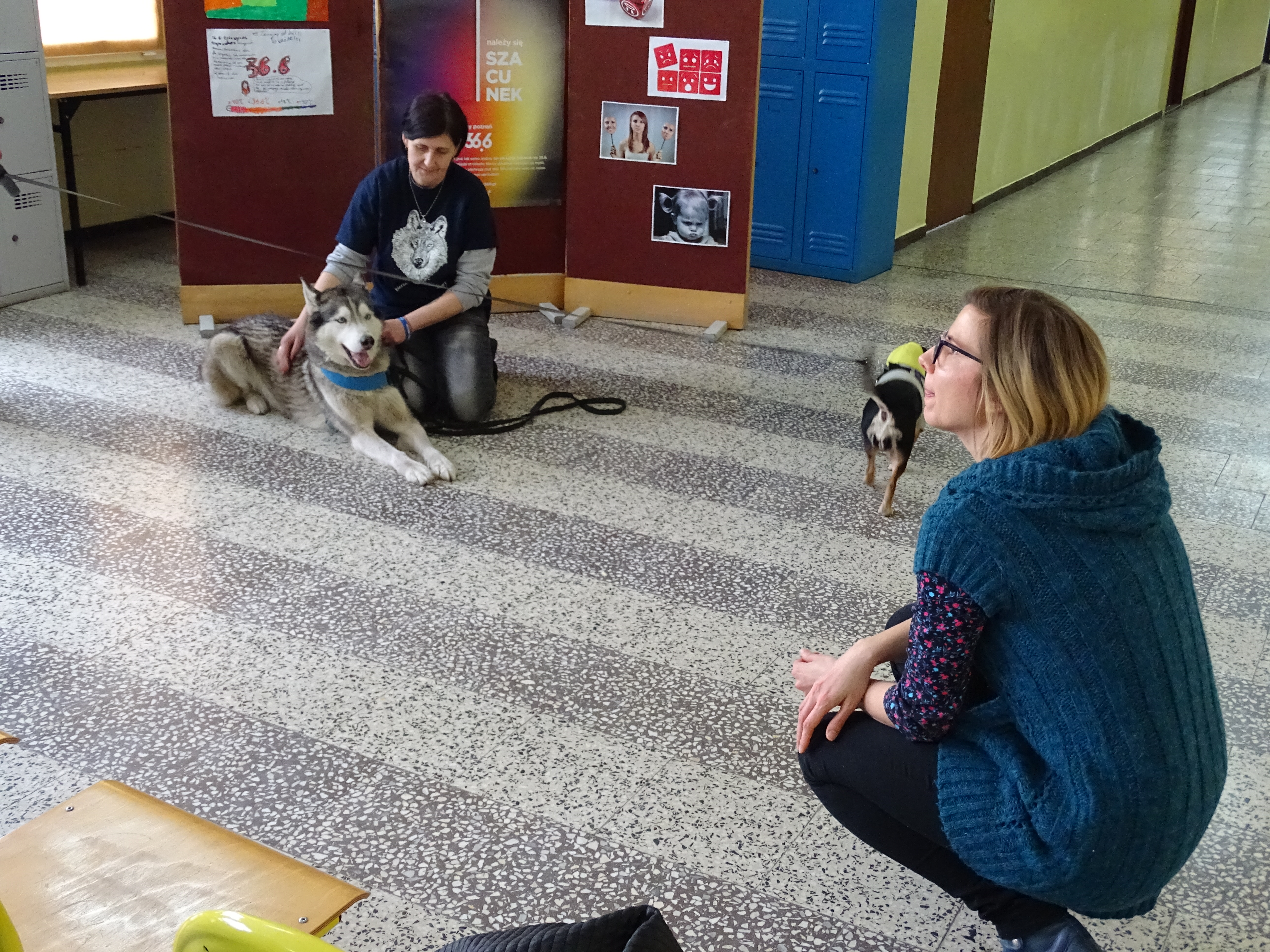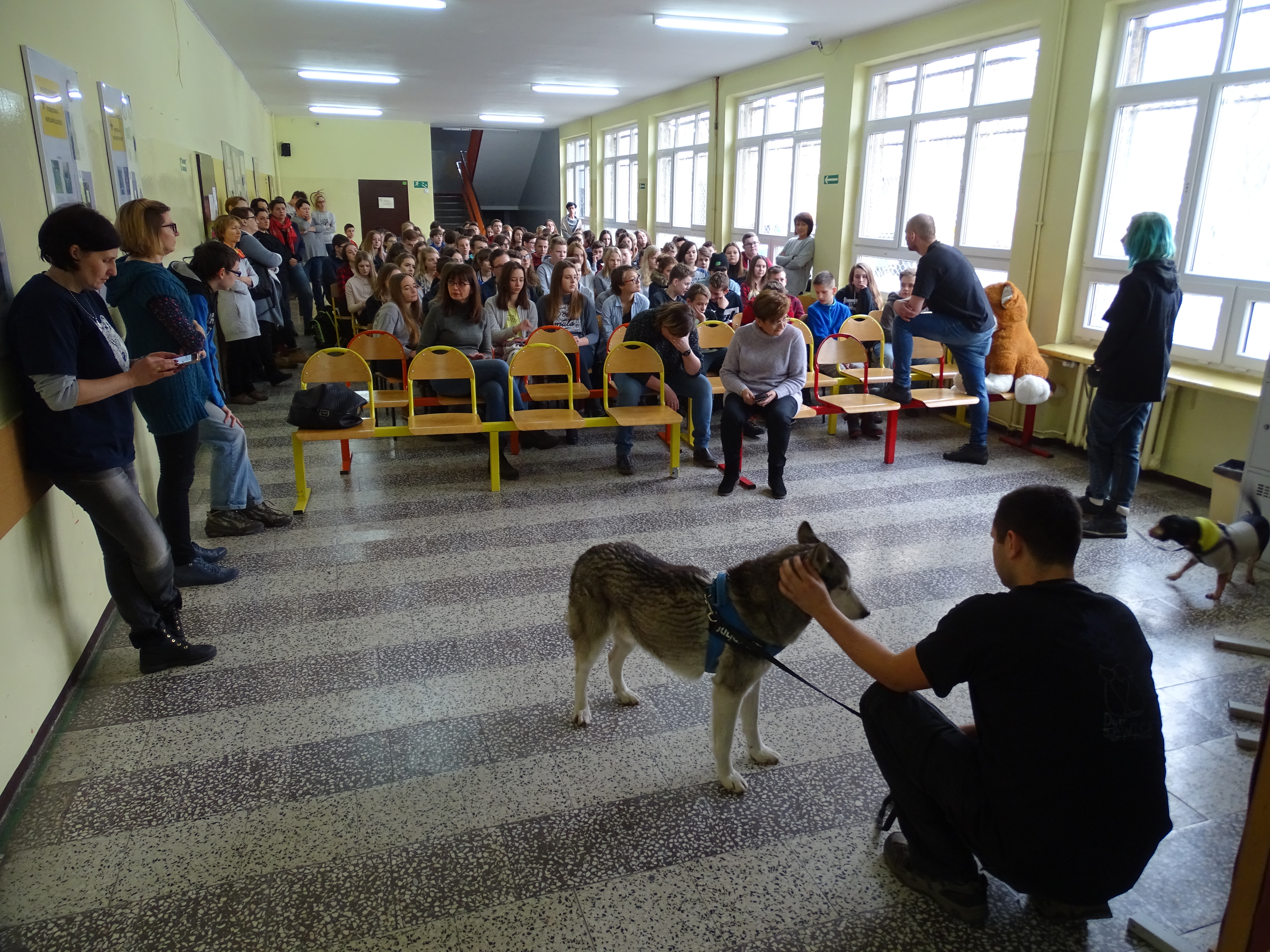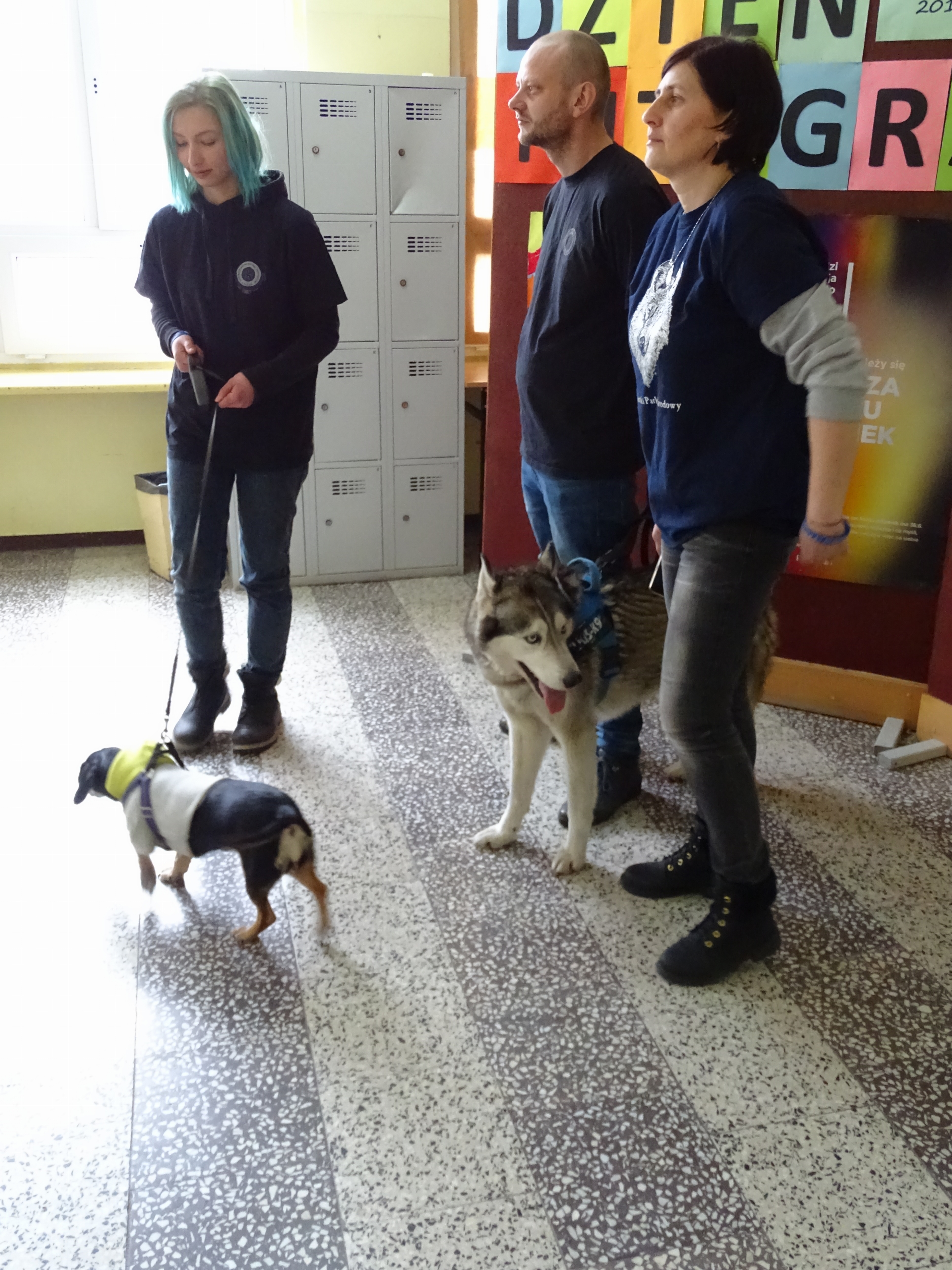 Dzisiaj w ramach podsumowania zbiórki na rzecz zwierząt odwiedzili naszą szkołę Wolontariusze Towarzystwa Opieki nad Zwierzętami wraz z podopiecznymi.