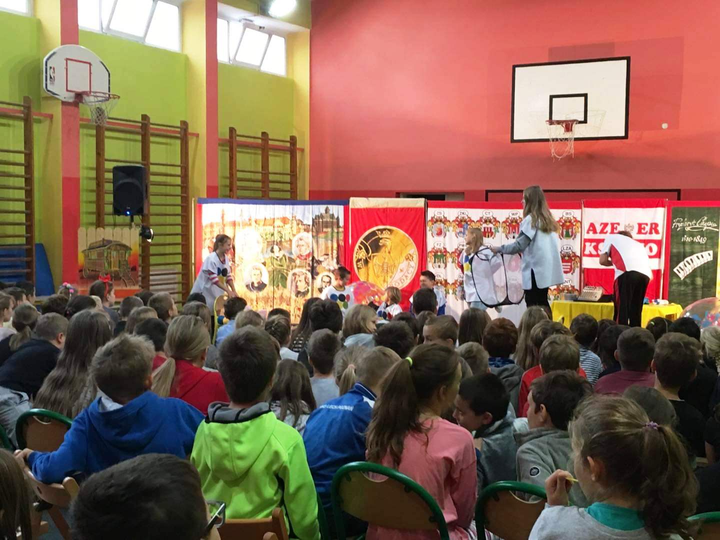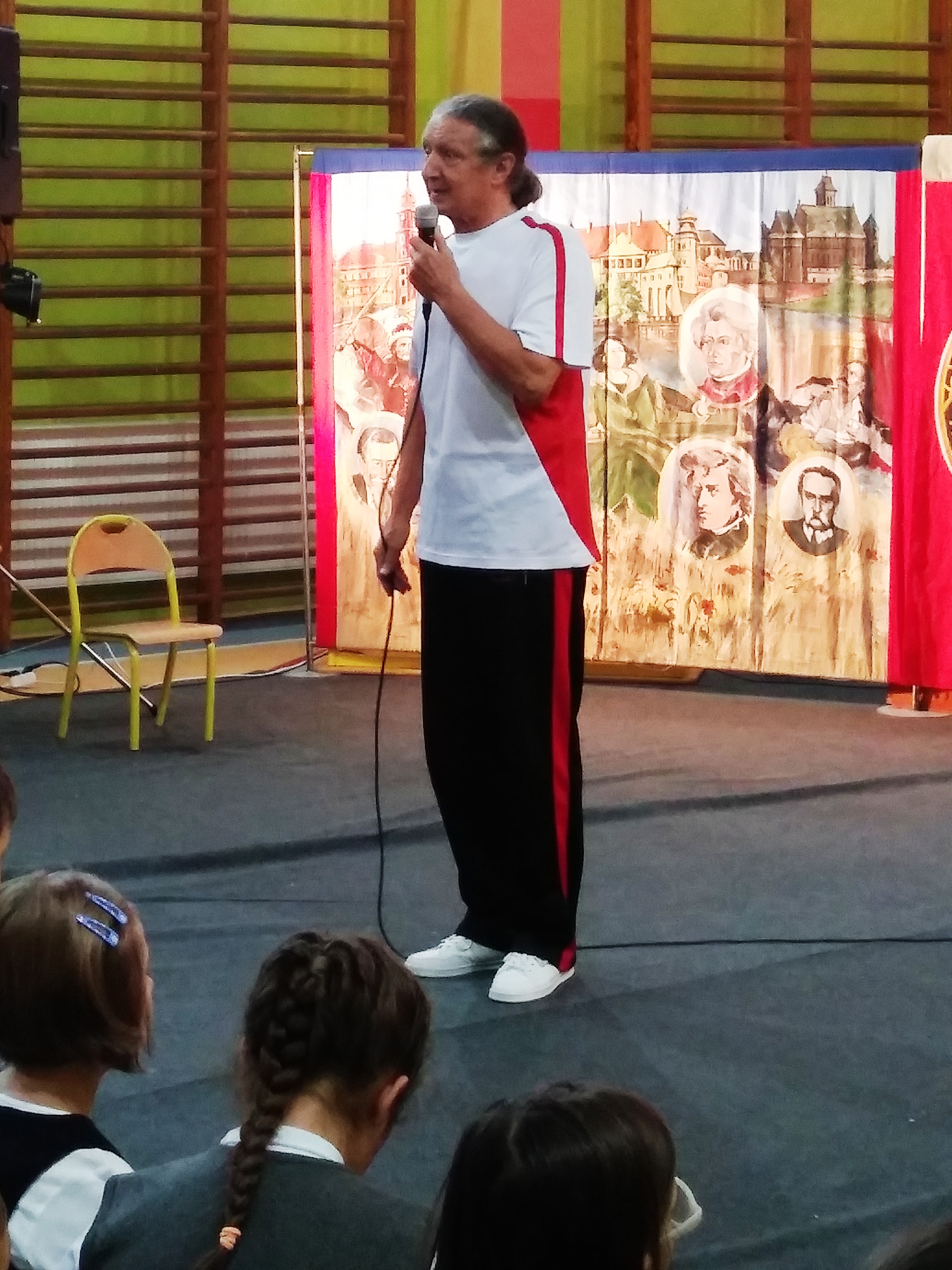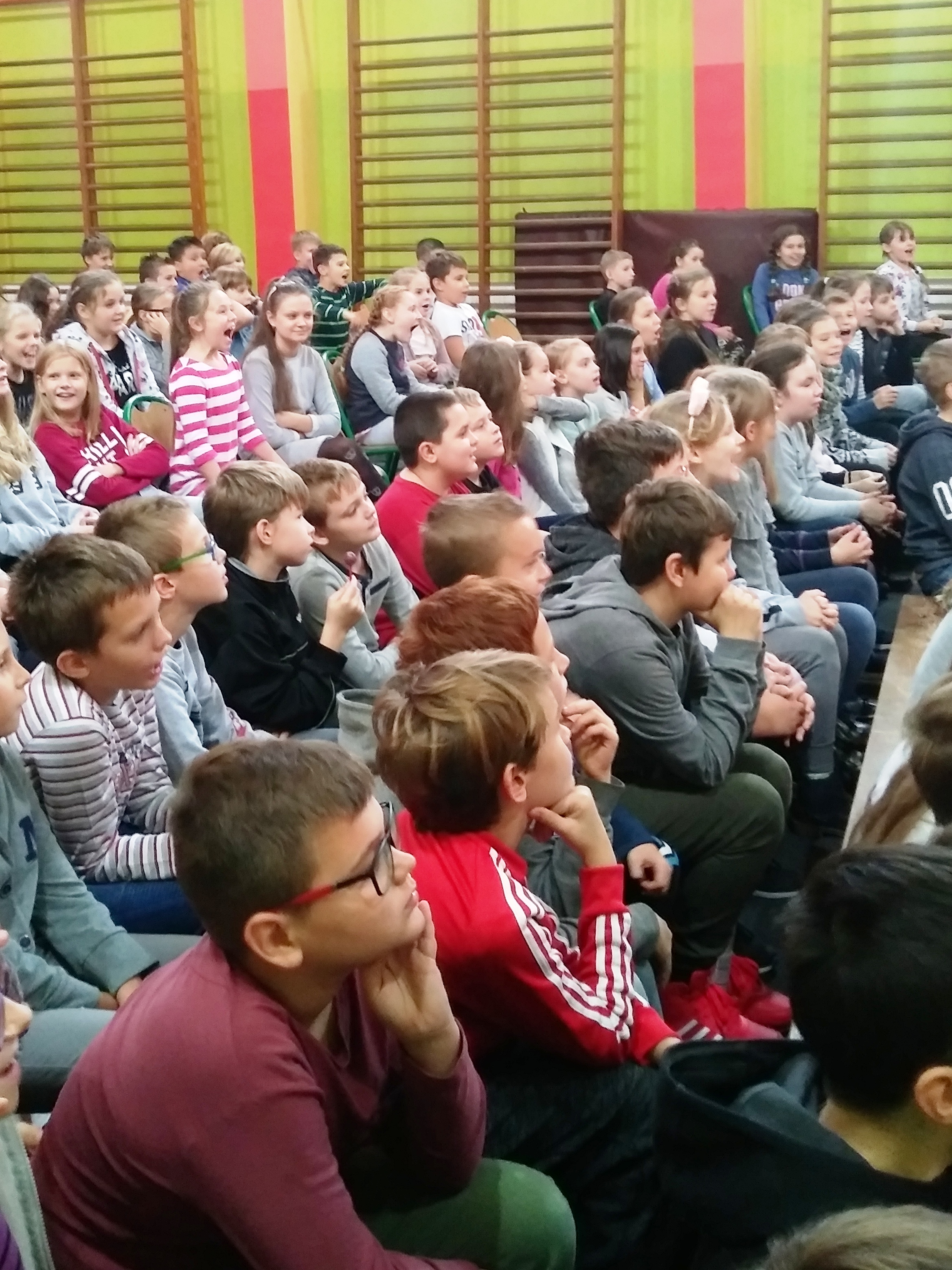 Dzisiaj do naszej szkoły przyjechał teatr objazdowy „W drodze” z przedstawieniem „Mity”. Przedstawienie odbyło się na sali gimnastycznej budynku A. Uczestniczyli w nim uczniowie klas 4A, 4C, 4D, 4E, 4B, 4F, 5A, 5D pod opieką nauczycieli.