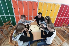 Na pierwszym piętrze Stowarzyszenie Miłośników Gier Planszowych Kości organizuje rozgrywki w profesjonalne gry planszowe. Kółko i krzyżyk przygotowane i przekazane szkole przez firmę Protechnica (Dariusz Sobczak) robi furrorę! Brawo!