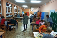 Na parterze gry sprawnościowe: ekologiczne kręgle, rodzinne segregowanie śmieci na czas, w salach świetlicowych dzieci tworzą samodzielnie gry planszowe. Ich pomysły, kreatywność przekraczają granice, które dla nas dorosłych są nie do zdobycia. Wszystkie gry były niesamowite!