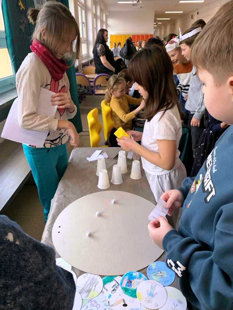 29 listopada uczniowie klas 1-3 mieli okazję wspólnie bawić się na szkolnych andrzejkach. Każda z klas przygotowała wróżby, w których wszyscy chętnie brali udział. Uczniowie przy każdym ze stanowisk zbierali pieczątki, za które na koniec czekała ich słodka nagroda.