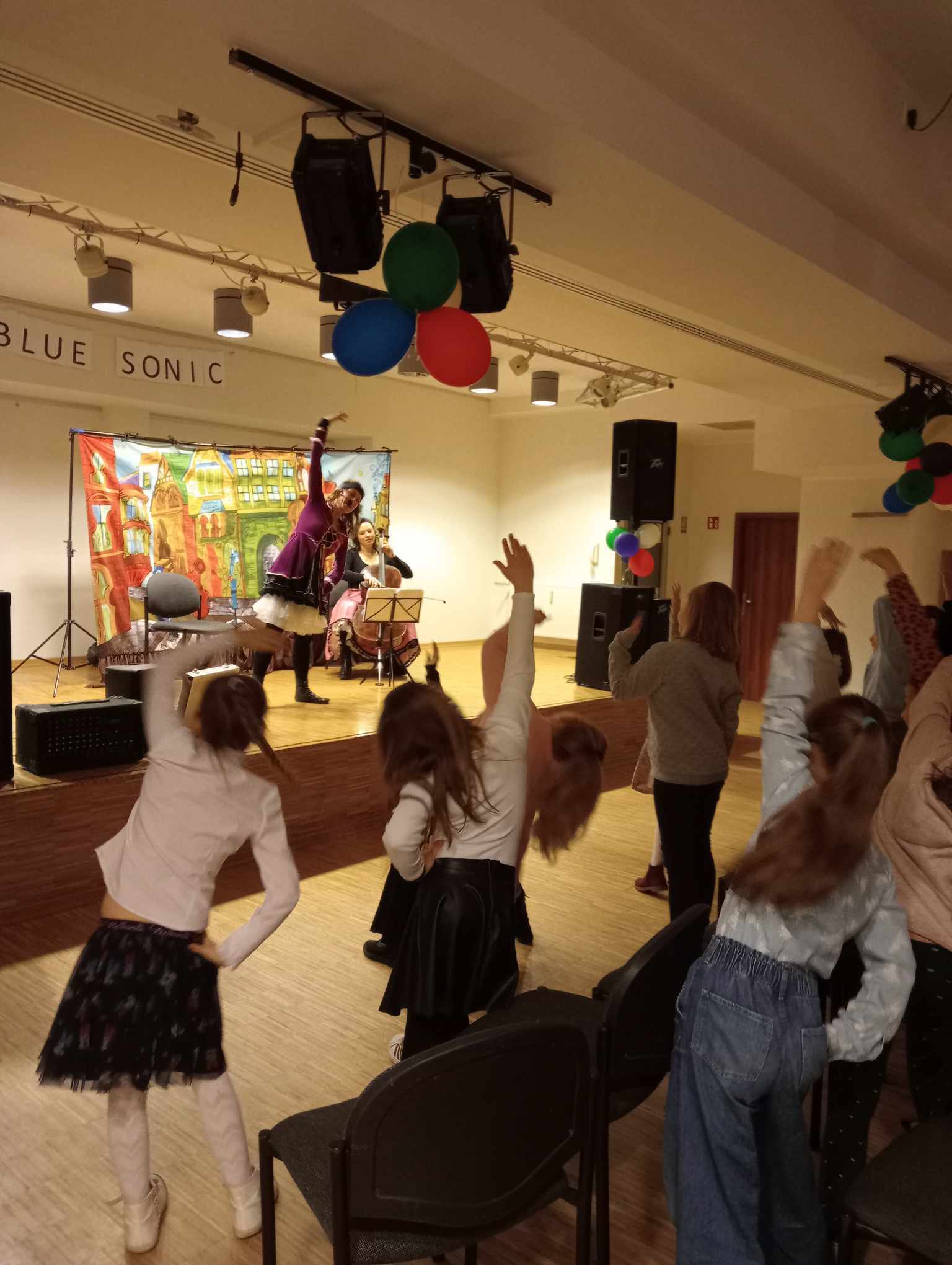 Uczniowie klas 1-3 uczestniczyli w koncercie Filharmonii Pomysłów w ODK Słońce. Przedstawienie nosiło tytuł „Benefis Manueli Wiolonczeli” i w zabawny i ciekawy sposób ukazywało historię pewnego instrumentu o jednej nóżce, 4 strunach i lokowanej główce.