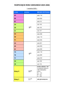 Serdecznie zapraszamy na inaugurację roku szkolnego 2025/2026 zgodnie z poniższym harmonogramem.